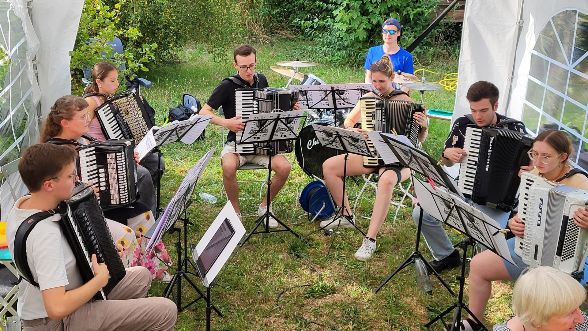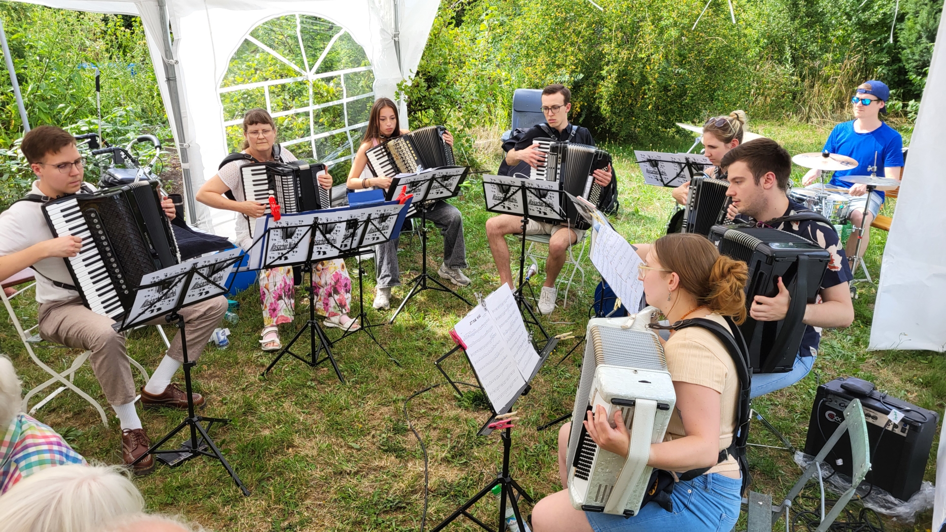 Am Samstag, den 19.07.2025 fand ein großes Gartenfest des Gartenbauvereins Emmering unter der Leitung von Rufin Mellentin statt und wurde vom Akkordeonensemble I Würfelklang vom Maisacher Würfel bestens 3 Stunden lang unterhalten. Fotos: Gartenbauverein Emmering